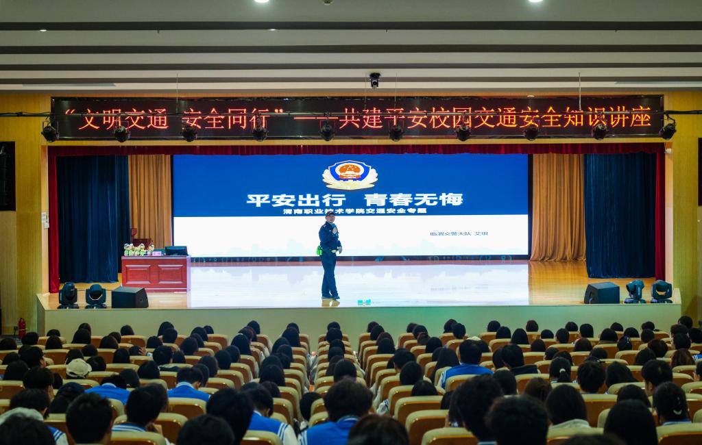 当日下午4时,交通安全知识讲座在图书馆一楼报告厅举行,渭南市交警支队艾琪警官为各二级学院学生代表作了专题讲解,内容详实、案例生动,有效提升了同学们的交通安全防范能力。