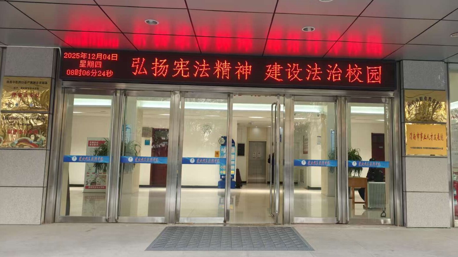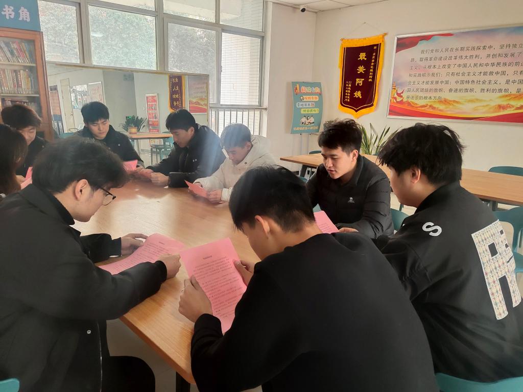 本次晨读活动创新实施“宪法进教室、进公寓、进社团的“三进”模式,推动宪法教育多场景融入。“宪法进教室”中,学生处副处长王强、学生管理科科长常振华、辅导员余水旸组织学生代表,在图书馆二楼会议室集中观看了教育部全国青少年普法网“宪法晨读”直播,同步参与升旗仪式,并庄严诵读宪法部分条款。在肃穆的氛围中,师生共同接受了一次生动的宪法教育,强化了对宪法权威的认同。“宪法进公寓”中,机电工程学院学生代表在学生公寓7号楼文化活动区,通过组织集体诵读,推动宪法学习从课堂延伸至生活社区,使法治教育更加贴近学生日常,促进宪法精神入脑入心。“宪法进社团”中,由校普法协会牵头,社团成员在校园内开展诵读活动。大家在诵读中深化对宪法条文的理解,在交流中自觉成为宪法的学习者与传播者,有效营造了校园法治文化氛围。此外,活动期间,我校充分利用校园宣传阵地,利用公众号、H5、展板和电子屏幕等形式营造浓厚的法治教育氛围,让宪法理念深入人心。