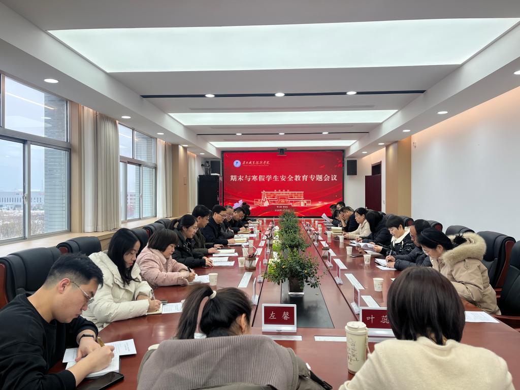 2026年1月20日9:00,我校在高新校行政楼五楼会议室,召开2026年期末与寒假学生安全教育专题会议。学校党委委员、副院长赵永刚出席会议,学生处处长赵国辉,学生处副处长、五高管理中心主任陈旭铖,学生处副处长王强,学生管理科科长常振华。各二级学院主管学生工作的党总支书记(副书记),学生科科长(副科长)参加。会议由学生处副处长王强主持。