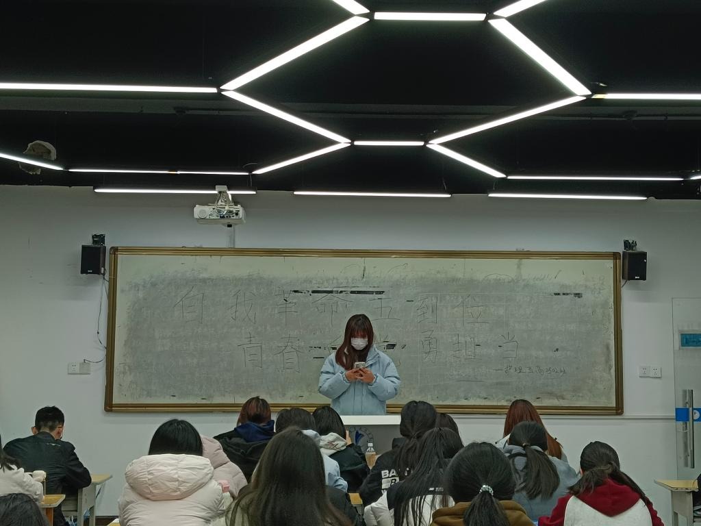 为引导青年学子以自我革命精神锤炼品格、砥砺担当,12月3日晚自习,五高中心团总支组织各班级开展“自我革命五到位 青春向党勇担当”主题团课。