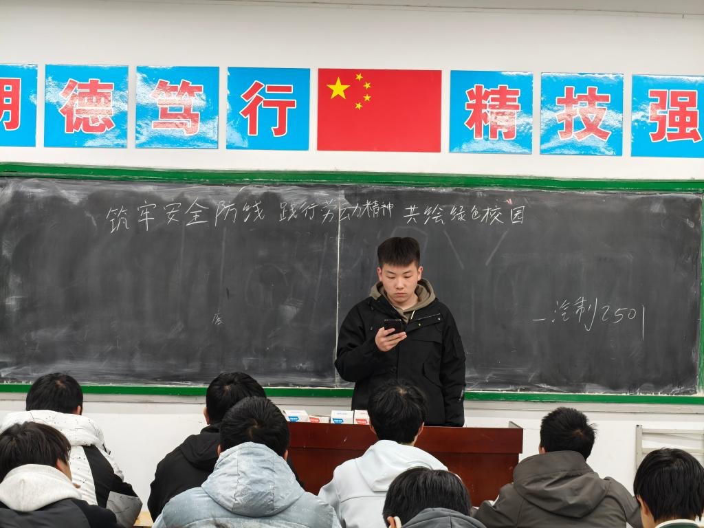 一是严抓安全管理,整治突出问题。严查染怪异发色、违规吸烟等行为,强化禁烟管理,重申学校纪律要求。二是深化劳动教育,弘扬劳动精神。明确每周三下午为“劳动教育日”,组织学生划分责任区域开展校园清扫及宿舍卫生维护,培养学生劳动习惯与责任意识。同步推进“一早一晚一周练”计划,通过早起锻炼、晚自习学习、技能训练强化学生综合素质。三是践行绿色理念,共建生态校园。结合植树节契机,部署“绿色校园·青春行动”手抄报创作活动,以环保知识、绿色校园建设为主题征集作品,倡导生态文明理念。
